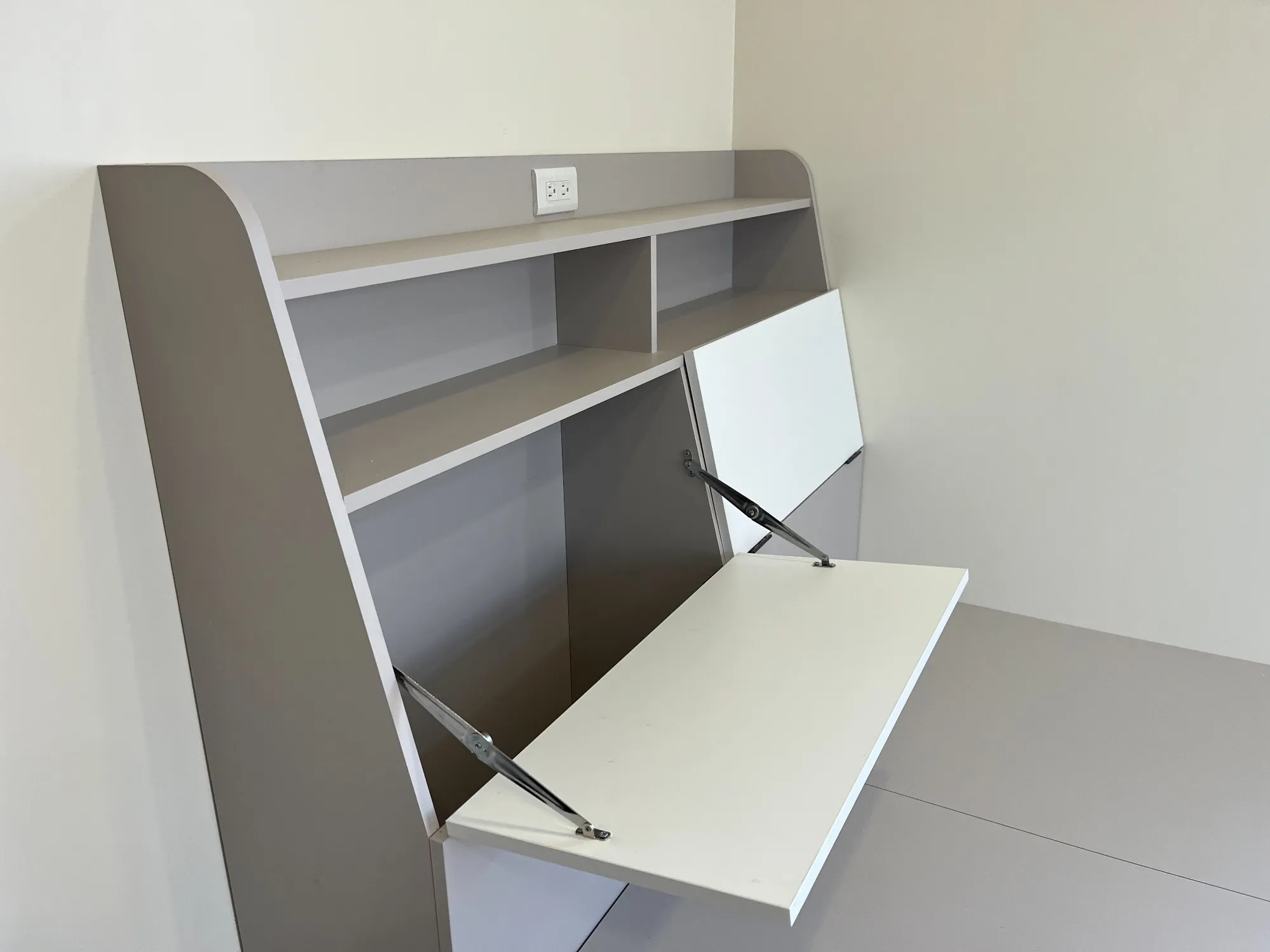 由於空間本身為早期裝潢,設計時需配合原有風格及配置條件,也讓我們在規劃上特別多用點心,確保系統櫃體能自然融入既有空間,兼顧美感與實用。